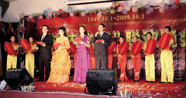 晚會共19個節(jié)目,歷時兩個小時。整體節(jié)目精彩迭加好戲連臺,觀眾歡呼聲浪不斷,充分展示了濱農人多才多藝生機勃發(fā)的精神風貌。倉儲部排演的集體舞《開門紅》火熱開場,昭示著濱農科技2009年在沐風浴雨中高歌猛進,文化建設喜揭新篇;民一車間的相聲《慶國慶話濱農》緊湊流暢,彰顯主題,伴著清脆的快板聲,演繹了一曲精彩幽默的濱農RAP;小品《濱農新聞聯(lián)播》現(xiàn)場表演活靈活現(xiàn)繪聲繪色,詼諧中趣話品牌;三分廠及財務部、倉儲部的大合唱嘹亮大氣,唱出了濱農蓬勃發(fā)展的厚重底蘊;品管部的集體舞《濱農歡歌》以快馬加鞭式的節(jié)奏和華麗的舞臺效果,將濱農人再接再厲揚鞭奮蹄的戰(zhàn)斗風姿展現(xiàn)得淋漓盡致。