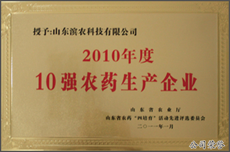 山東濱農(nóng)科技有限公司被評為10強農(nóng)藥生產(chǎn)企業(yè)第一名